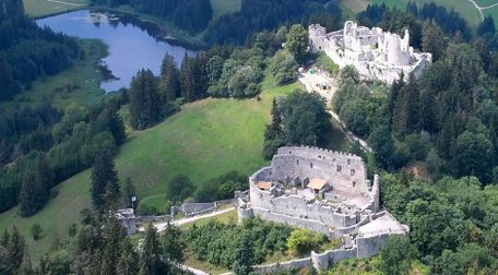 Eisenberg - Hoch über dem kleinen Dorf Zell bei Eisenberg thronen in 1050 m bzw. 1040 m ü NN zwei mächtige Burgruinen