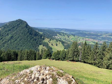 Eine erlebnisreiche Kammwanderung mit viel Aussicht in alle Himmelsrichtungen. Auf den Spuren der Wandertrilogie Allgäu geht es bis zum Nordufer des Großen Alpsees, dem größten Allgäuer Natursee. Rückfahrt von Bühl mit dem Linienbus. Einkehrmöglichkeiten in ruigen...