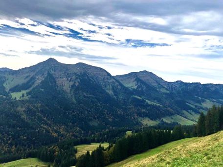 Am nächsten Tag zurück über das Seifenmoos zur Sennalpe Mittelberg und weiter hinauf auf den Sedererstuiben. Wer mehr will, nimmt den Stuibengipfel mit und läuft an der Alpe Gund vorbei in einem Bogen von Osten kommend hinauf zum Grat. Die Strecke entlang des Grates ist ohne Einkehrmöglichkeit, deshalb auf genügend Proviant achten! Der Weg führt abwechslungsreich über Buralpkopf, Gündlekopf, Rindalphorn und dem Gelchenwanger Grat zum Hochgrat - und setzt Trittsicherheit und Schwindelfreiheit voraus. An der Bergstation der Hochgratbahn angekommen, steigen wir noch ein paar Höhenmeter weiter bergab - zur zweiten Übernachtung auf dem Staufner Haus (Tel. 08386/8255), einer DAV-Hütte.