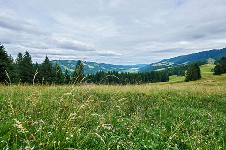 Abwechslungsreicher Wald- und Wiesenweg mit herrlichem Ausblick auf das Konstanzer Tal bis zum Alpsee.