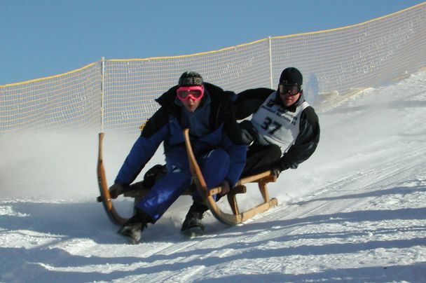 Spannende Rennen mit Hornerfahrerinnen und -fahrern, die auf ihren Hornerschlitten um Hundertstelsekunden kämpfen.