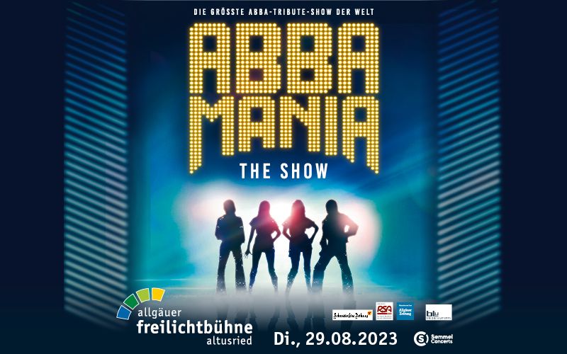 Das Jahr 2023 steht ganz im Zeichen von ABBAMANIA THE SHOW. Das einzigartige Showspektakel wird am 29. August 2023 mit der fantastischen ABBAMANIA THE SHOW Band auch einen Zwischenstopp beim sommerFESTIVAL in Altusried einlegen und für ausgelassene Stimmung sorgen. Tickets gibt es unter www.eventim.de und www.semmel.de sowie an allen bekannten Vorverkaufsstellen in der Region.